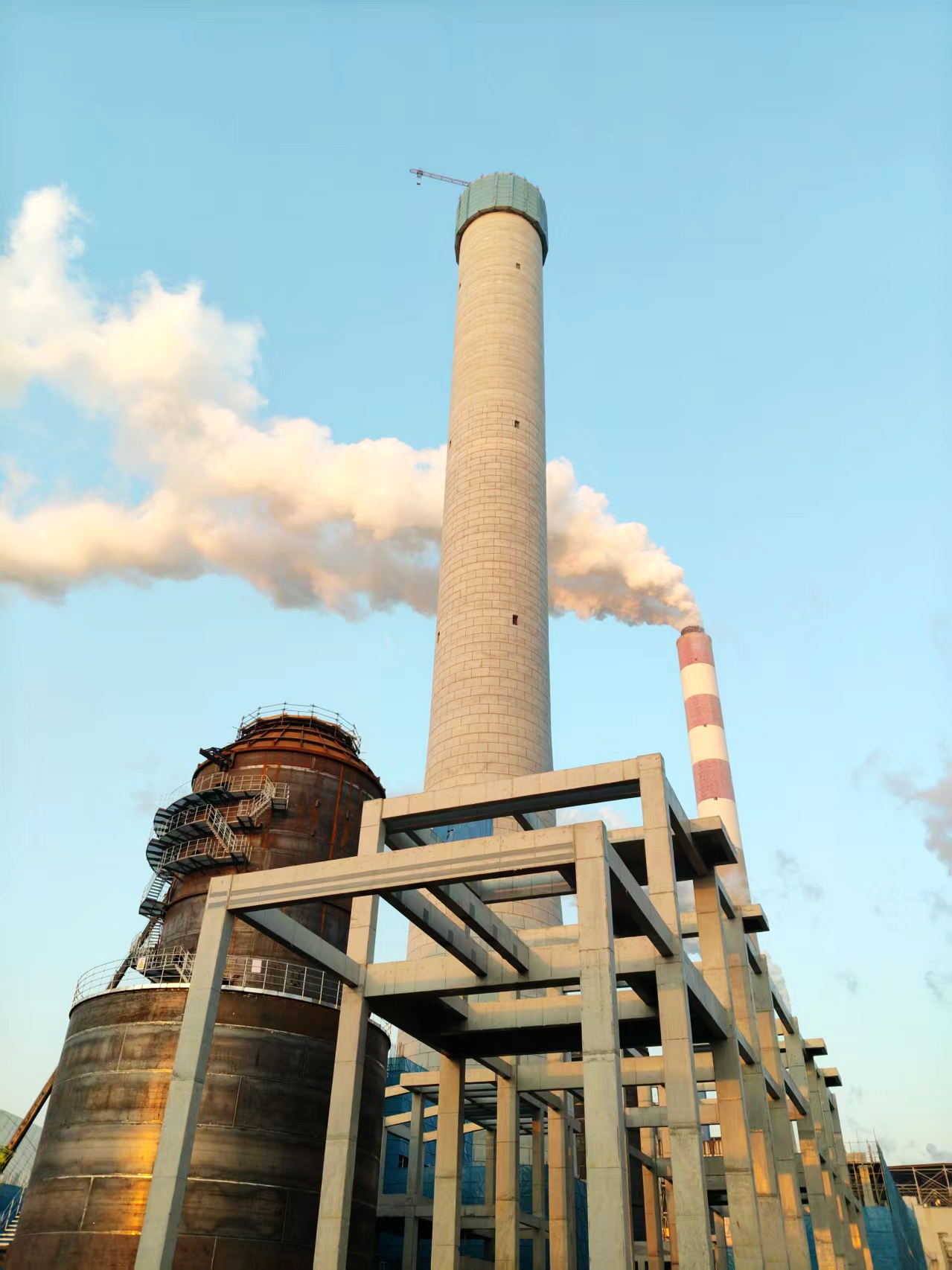 近日,伴隨著最后一方混凝土澆筑完成,建筑公司參建的西柏坡電廠標(biāo)志性構(gòu)筑物——210米高煙囪圓滿完成筒壁封頂作業(yè)。這一關(guān)鍵節(jié)點(diǎn)的順利達(dá)成,不僅標(biāo)志著項(xiàng)目核心構(gòu)筑物施工實(shí)現(xiàn)突破性進(jìn)展,更為后續(xù)煙囪鋼平臺(tái)與鋼內(nèi)筒安裝按下“快進(jìn)鍵”,為項(xiàng)目整體竣工投產(chǎn)奠定了堅(jiān)實(shí)基礎(chǔ)。 西柏坡電廠四期工程位于石家莊市平山縣西柏坡經(jīng)濟(jì)開發(fā)區(qū),是河北省重點(diǎn)能源項(xiàng)目。項(xiàng)目的建設(shè)將替代區(qū)域約287臺(tái)燃煤和燃?xì)鉅t,減少標(biāo)煤消耗約180萬噸,同步形成“熱電聯(lián)供+余熱利用+固廢處置”的循環(huán)經(jīng)濟(jì)產(chǎn)業(yè)鏈。待建成后預(yù)計(jì)每年可新增發(fā)電量約59.4億千瓦時(shí)、供熱量約1766.4萬吉焦,集中供熱面積約3200萬平方米,工業(yè)蒸汽供應(yīng)能力達(dá)200噸/時(shí),將為京津冀協(xié)同發(fā)展提供堅(jiān)實(shí)的清潔電力支撐與能源保障,助力區(qū)域經(jīng)濟(jì)的可持續(xù)發(fā)展,為我國(guó)能源革命的推進(jìn)貢獻(xiàn)重要力量,共同譜寫清潔能源建設(shè)新篇章。 作為西柏坡電廠的“視覺焦點(diǎn)”,本次建設(shè)的煙囪整體高度為210米,其筒壁高度為202米,整體高度相當(dāng)于一座70層的摩天大樓。為了讓這座煙囪安全、高效地“長(zhǎng)高”,項(xiàng)目部在施工中創(chuàng)新采用國(guó)內(nèi)首次應(yīng)用的——附著式腳手架+翻模施工工藝,并配套了施工升降機(jī)+液壓頂升平橋組合體系負(fù)責(zé)垂直運(yùn)輸,混凝土地泵搭配布料機(jī)協(xié)同完成混凝土輸送,有效地將高空作業(yè)面轉(zhuǎn)變?yōu)榘踩摹翱罩幸苿?dòng)工廠”。 那么,這座“空中移動(dòng)工廠”是怎樣煉成的? 這套工藝的“靈魂”,就是附著式升降腳手架。它配備了七層操作平臺(tái),通過三個(gè)附墻支座牢牢固定在筒壁上,提升系統(tǒng)由提升支座、鏈條葫蘆及智能控制系統(tǒng)組成,可實(shí)現(xiàn)同步平穩(wěn)提升,做到“以壁承重,智能攀升”。 施工人員可以通過專用通道直達(dá)任意一層平臺(tái),在這里完成鋼筋綁扎、模板安裝以及提升系統(tǒng)的安拆等工作。同時(shí)在平臺(tái)四周覆蓋防護(hù)鋼板網(wǎng)、擋板、底部兜底安全網(wǎng),不僅有效防范雜物墜落風(fēng)險(xiǎn),還可以抵御惡劣天氣對(duì)施工的干擾,相較于傳統(tǒng)施工方法,該工藝使高空作業(yè)提升速度更快、安全系數(shù)更高,施工效率顯著提升。 如何保障“空中工廠”的穩(wěn)定運(yùn)轉(zhuǎn)? 項(xiàng)目依托施工升降機(jī)與液壓頂升平橋的組合系統(tǒng),實(shí)現(xiàn)了人員與物料的安全高效的穩(wěn)定運(yùn)輸,形成“爬升一層、澆筑一層”的高效循環(huán),保障了核心結(jié)構(gòu)的澆筑質(zhì)量均勻可靠。 在筒壁模板工藝上,煙囪主體采用清水鋼筋混凝土筒體結(jié)構(gòu),以保障成型質(zhì)量和耐久性。項(xiàng)目為此使用了定制化模板,每節(jié)施工高度精準(zhǔn)控制在3米。更巧妙的是,模板拼縫處加入T型條形成明縫,使拼縫整齊美觀,清水混凝土的表面質(zhì)感大幅提升。最終煙囪筒壁呈現(xiàn)出光滑平整、色澤均勻一致的效果,各項(xiàng)技術(shù)指標(biāo)全部?jī)?yōu)于規(guī)范要求。 面對(duì)新技術(shù)應(yīng)用帶來的施工挑戰(zhàn),以及雨季、高溫、大風(fēng)、冬季施工等多重不利因素,項(xiàng)目部精準(zhǔn)施策、主動(dòng)作為:組建專項(xiàng)攻堅(jiān)小組,全程跟蹤解決筒壁施工中的技術(shù)難點(diǎn),建立“預(yù)防-排查-整治”閉環(huán)管理機(jī)制,全面落實(shí)安全隱患管控。同時(shí),項(xiàng)目部與各參建單位緊密協(xié)作,嚴(yán)抓質(zhì)量管控、強(qiáng)化進(jìn)度管理,通過每周進(jìn)度盤點(diǎn)、動(dòng)態(tài)優(yōu)化施工方案,確保了施工任務(wù)高質(zhì)高效推進(jìn)。 從210米的“空中移動(dòng)工廠”到精準(zhǔn)高效的爬升工藝,從定制化模板呈現(xiàn)的清水混凝土之美,到閉環(huán)管理筑牢的安全防線,西柏坡電廠四期工程用攻堅(jiān)克難的實(shí)干擔(dān)當(dāng),詮釋了新時(shí)代電建人的智慧與力量。下一步,項(xiàng)目部將聚焦煙囪鋼平臺(tái)及鋼內(nèi)筒安裝工程,繼續(xù)細(xì)化質(zhì)量與安全保障措施,以精益求精的施工態(tài)度,在西柏坡這片紅色沃土上賡續(xù)紅色血脈,以實(shí)干實(shí)績(jī)走好新時(shí)代“趕考路”,全力沖刺項(xiàng)目建設(shè),為革命老區(qū)的綠色發(fā)展注入強(qiáng)勁動(dòng)力。 |