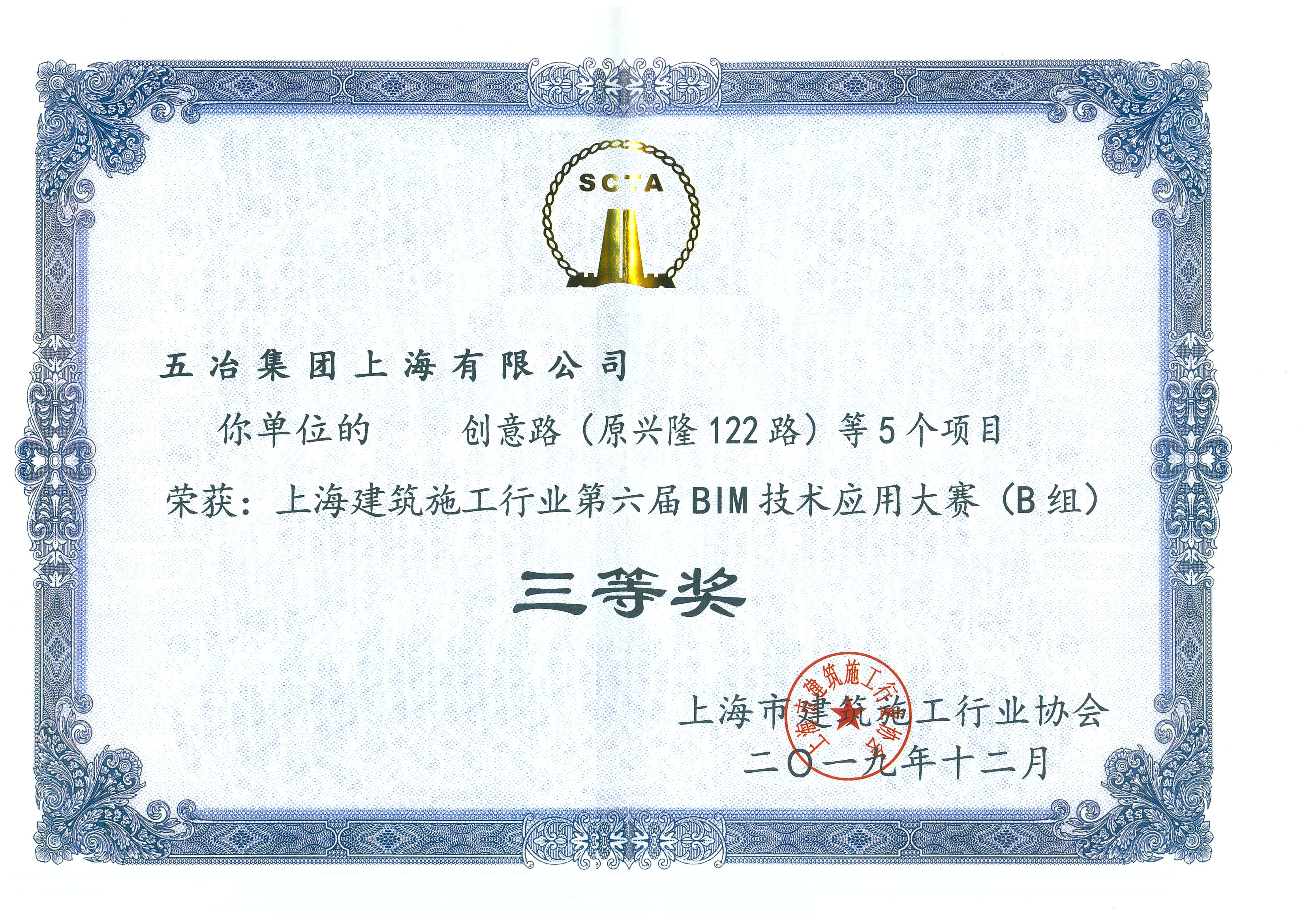 創(chuàng)意路(原興隆122路)等5個項目——上海建筑施工行業(yè)第六屆BIM技術應用大賽三等獎(B組)