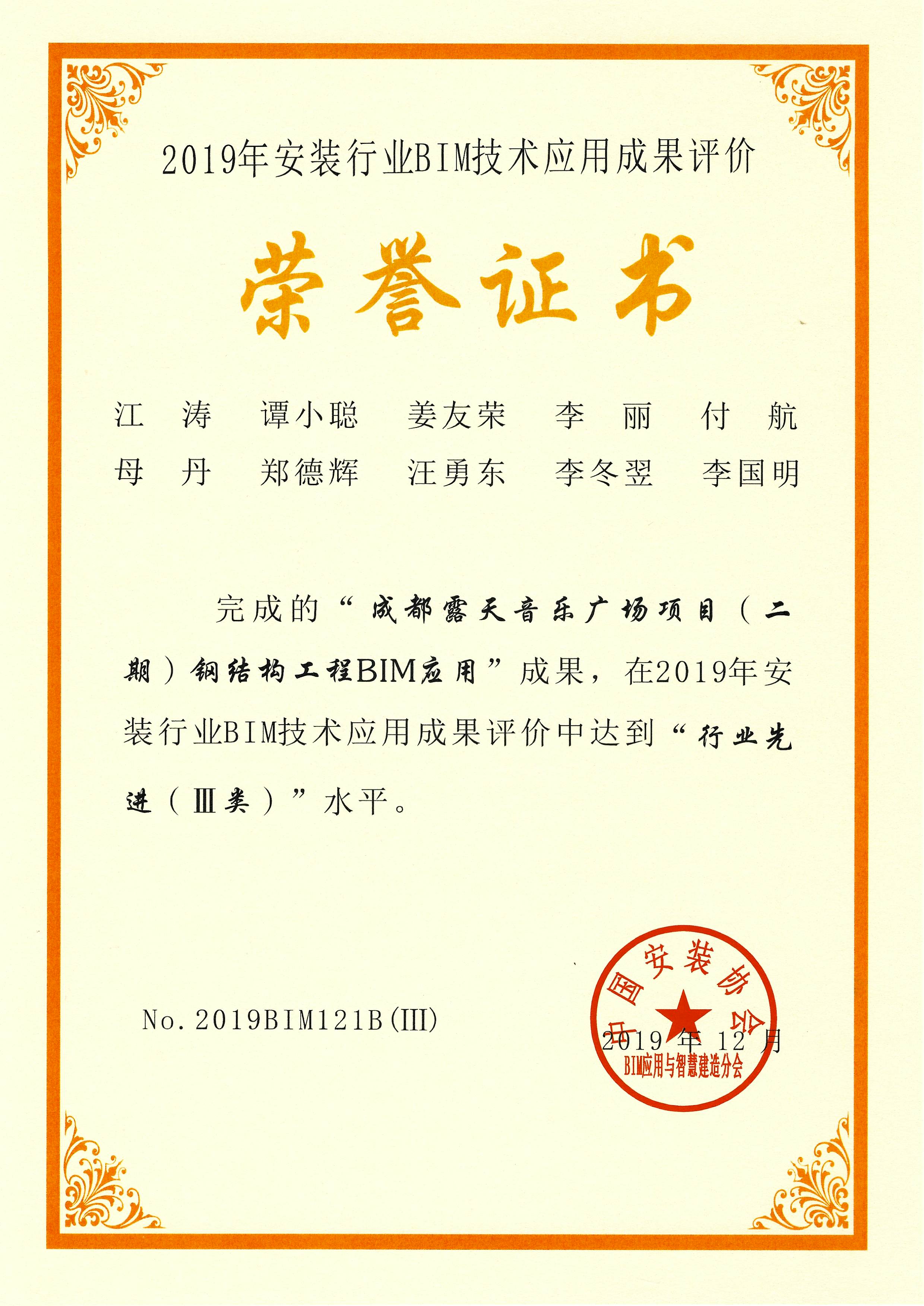 成都露天音樂公園廣場項目(二期)鋼結構工程BIM應用——2019年安裝行業(yè)BIM技術應用成果達到行業(yè)先進(III類)