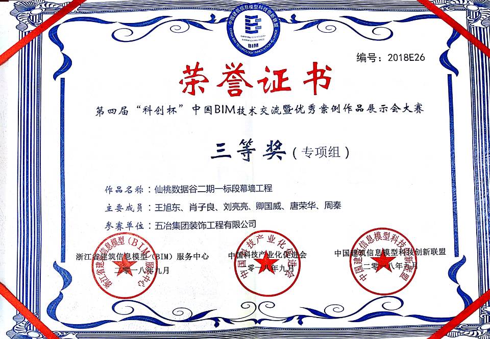 仙桃數(shù)據(jù)谷二期一標段幕墻工程——2018年第四屆科創(chuàng)杯三等獎(專項組)