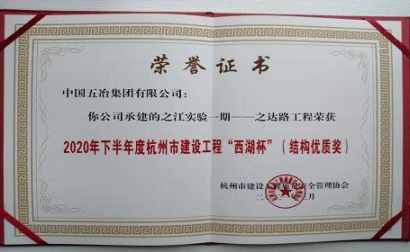 之江實(shí)驗(yàn)一期-之達(dá)路工程—2020年下半年度杭州市建設(shè)工程”西湖杯“(結(jié)構(gòu)優(yōu)質(zhì)獎(jiǎng))