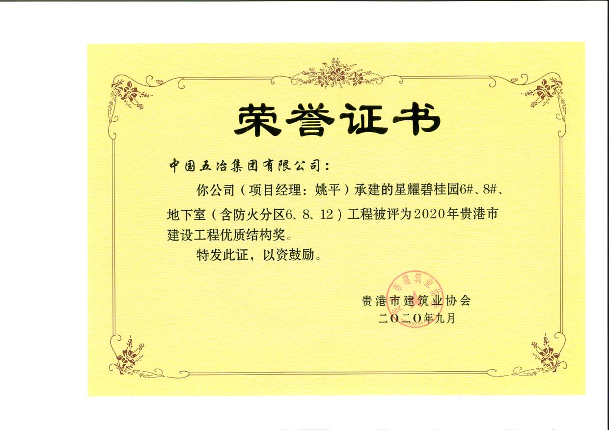 星耀碧桂園6#、8#、地下室工程—2020年貴港市建設(shè)工程優(yōu)質(zhì)結(jié)構(gòu)獎(jiǎng)