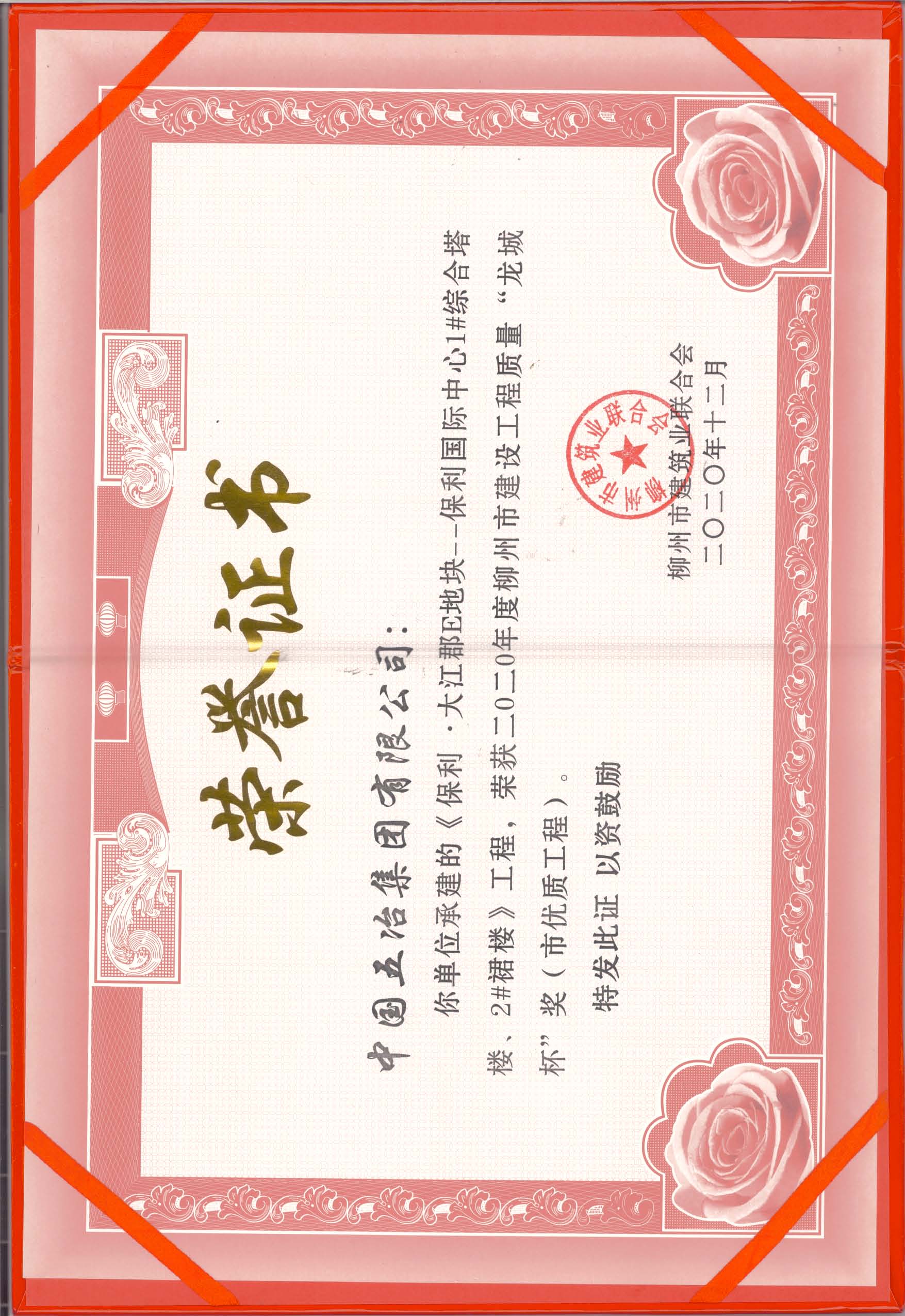 保利.大江郡E地塊-保利國(guó)際中心1#綜合塔樓、2#裙樓工程—2020年柳州市建設(shè)工程質(zhì)量龍城杯獎(jiǎng)