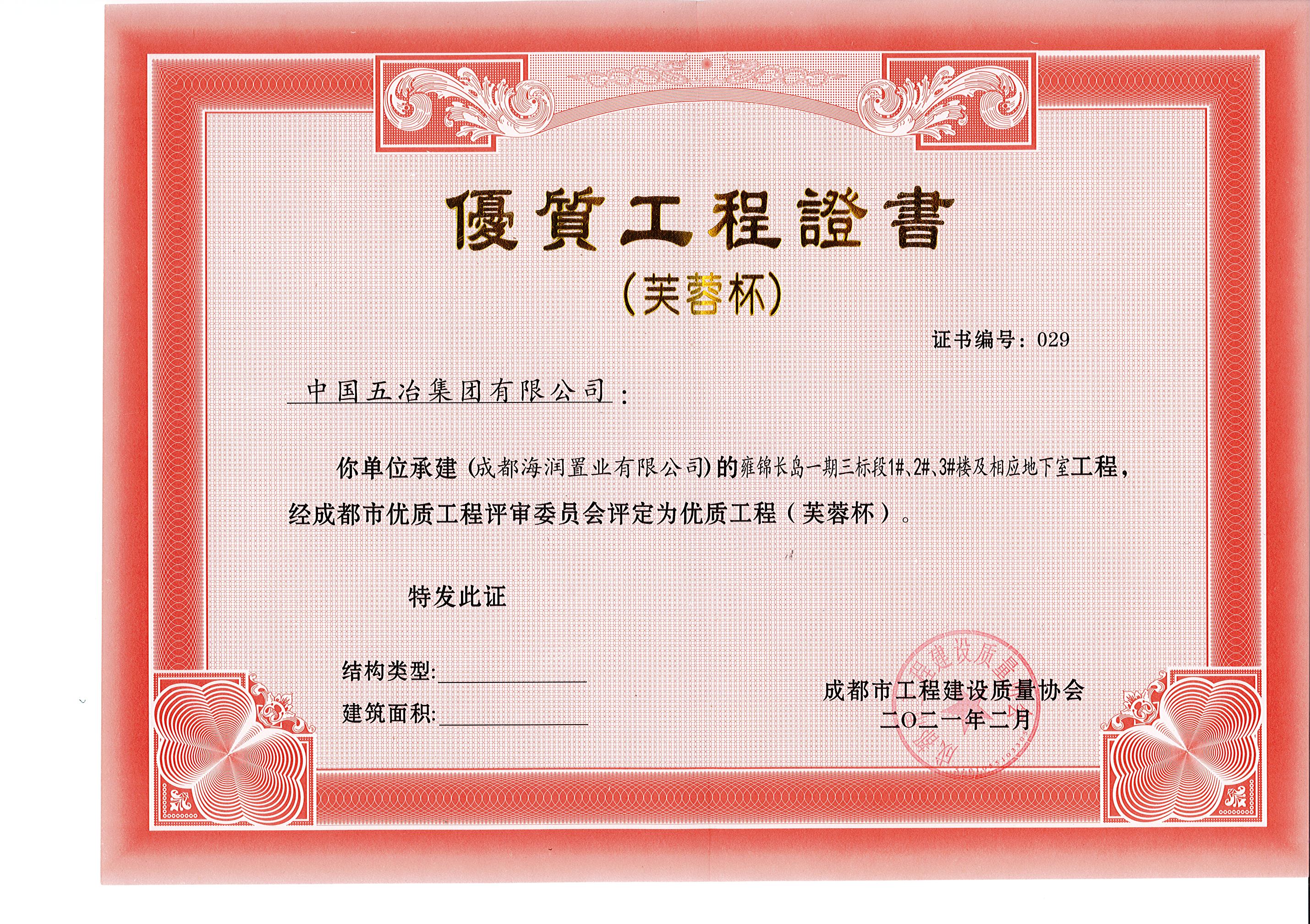 雍錦長(zhǎng)島一期三標(biāo)段1#、2#、3#樓及相應(yīng)地下室工程—2020年成都市芙蓉杯