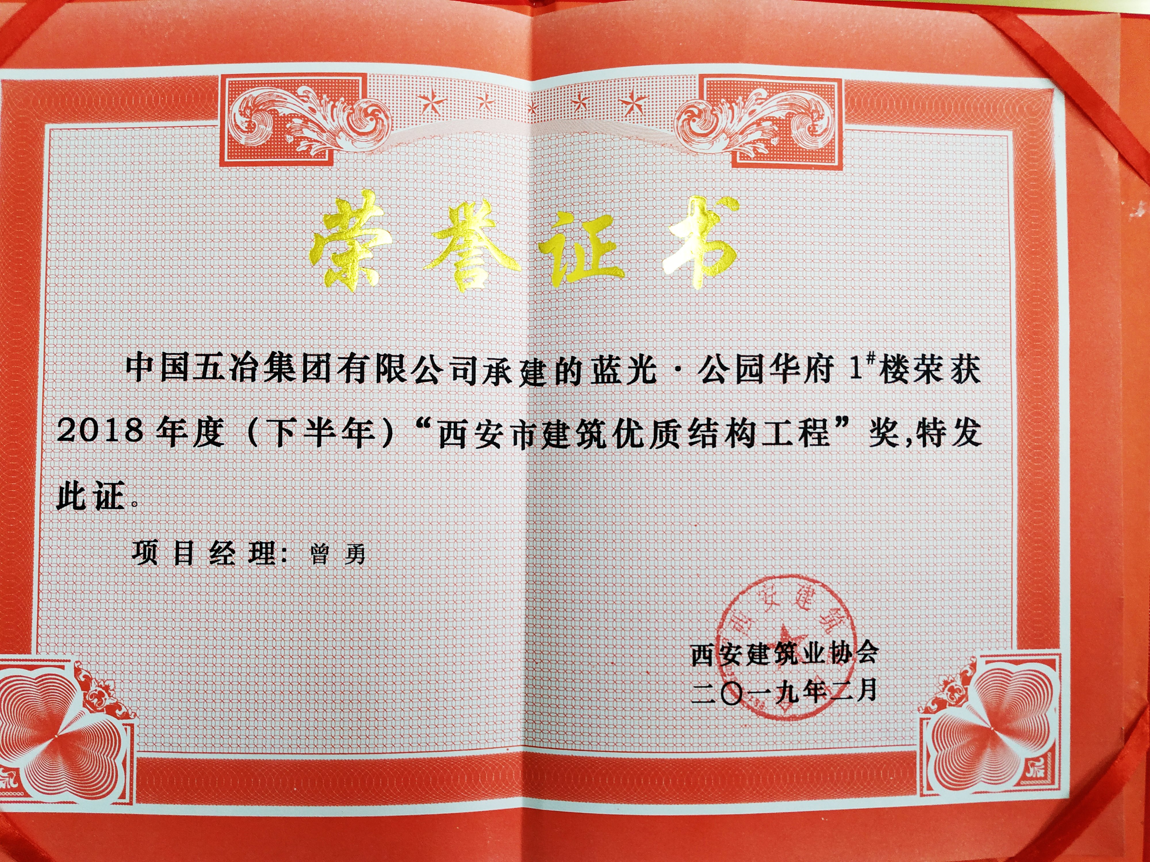 西安藍(lán)光.華府公園一期1號(hào)樓—2018年度(下半年)西安市結(jié)構(gòu)優(yōu)質(zhì)