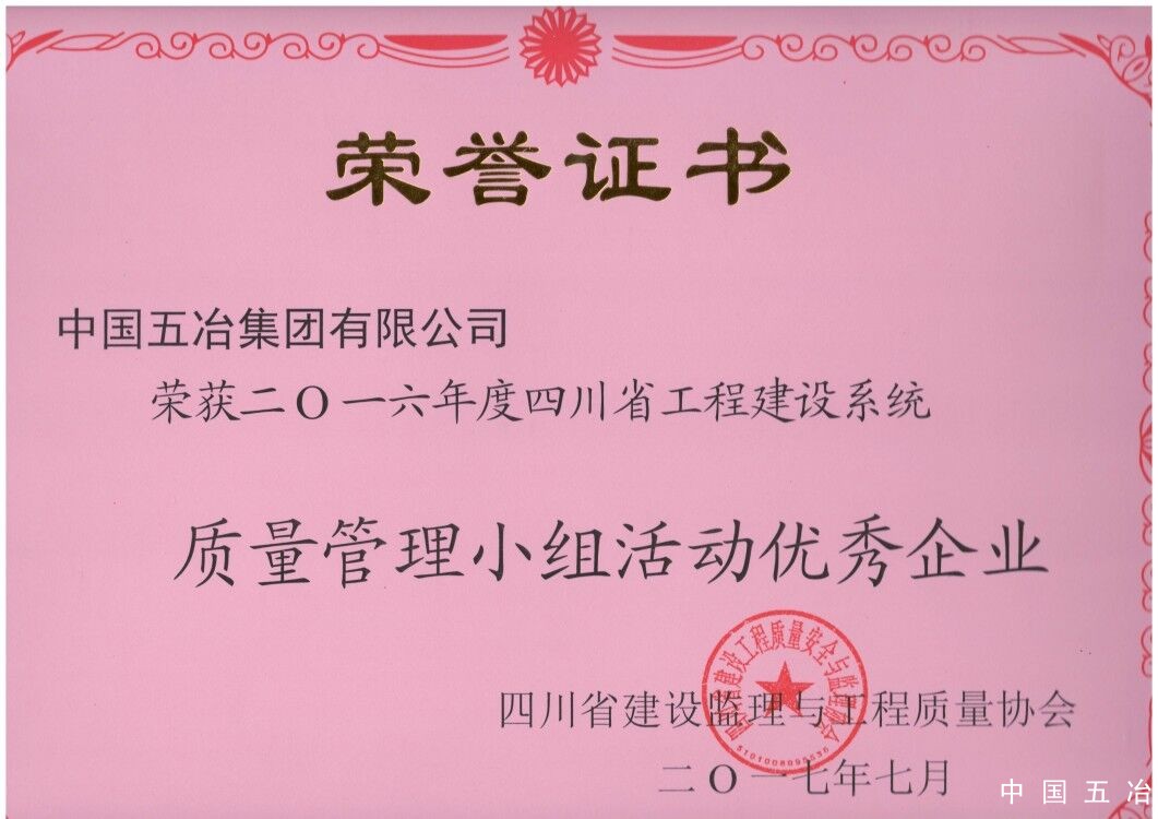 四川省工程建設(shè)系統(tǒng)質(zhì)量管理小組活動(dòng)優(yōu)秀企業(yè)