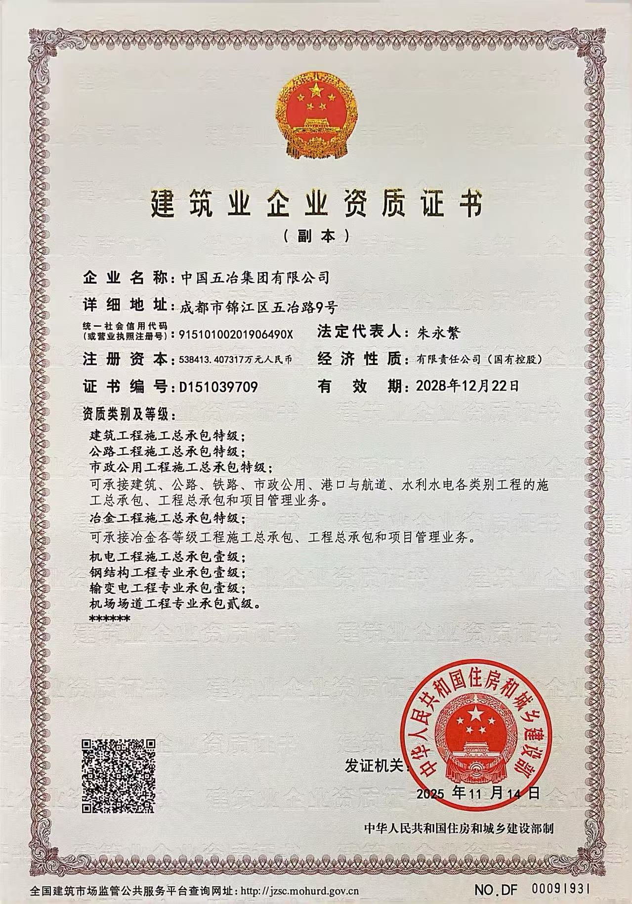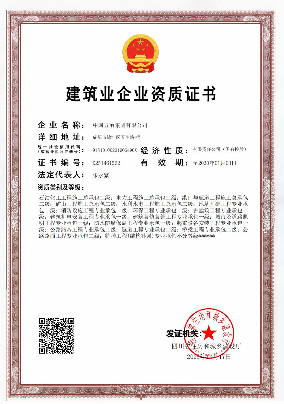 建筑業(yè)企業(yè)資質(zhì)證書(建筑、市政、公路、冶金特級(jí))
