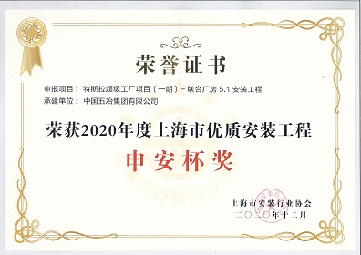 特斯拉超級(jí)工廠項(xiàng)目(一期)聯(lián)合廠房5.1安裝工程-2020年度上海市優(yōu)質(zhì)安裝工程申安杯獎(jiǎng)