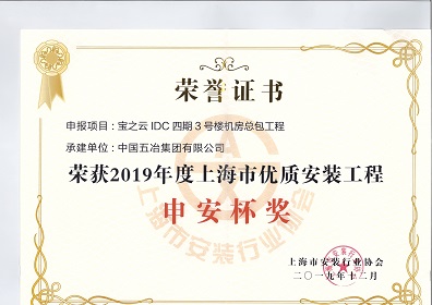 寶之云IDC四期3號(hào)樓機(jī)房總包工程-2019年度上海市優(yōu)質(zhì)安裝工程申安杯獎(jiǎng)