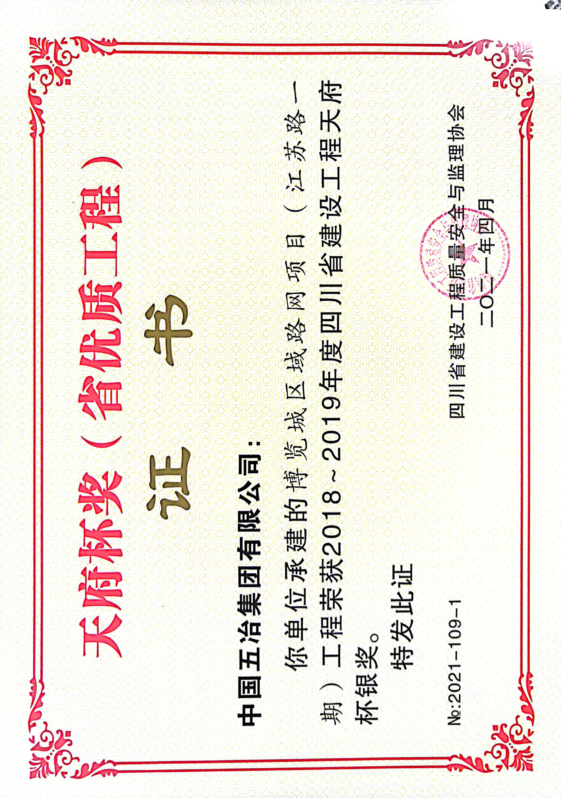 博覽城區(qū)域路網(wǎng)項(xiàng)目(江蘇路一期)-2018~2019年度四川省建設(shè)工程天府杯銀獎(jiǎng)