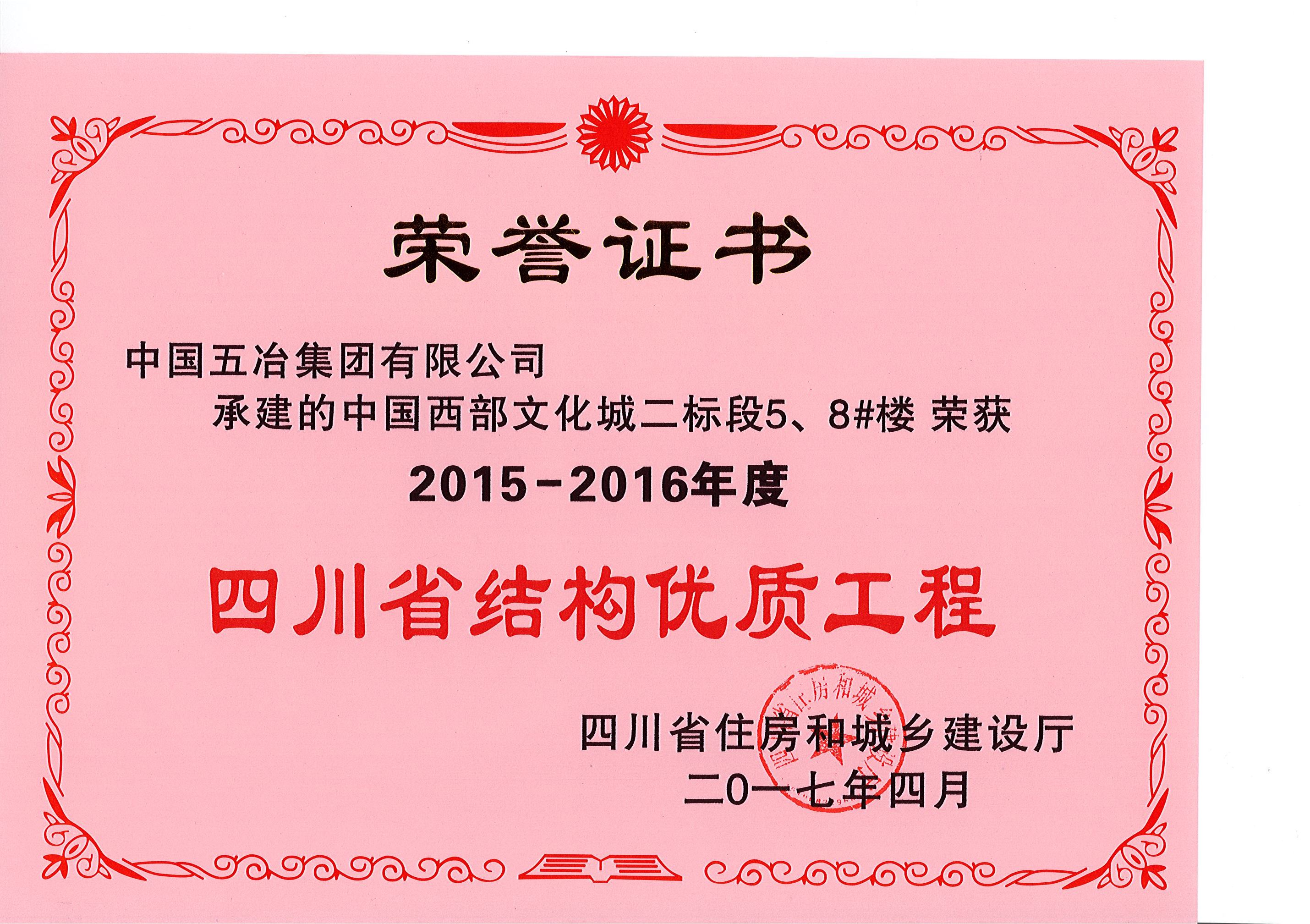中國西部文化城二標(biāo)段5、8#樓—2015-2016年度四川省結(jié)構(gòu)優(yōu)質(zhì)工程