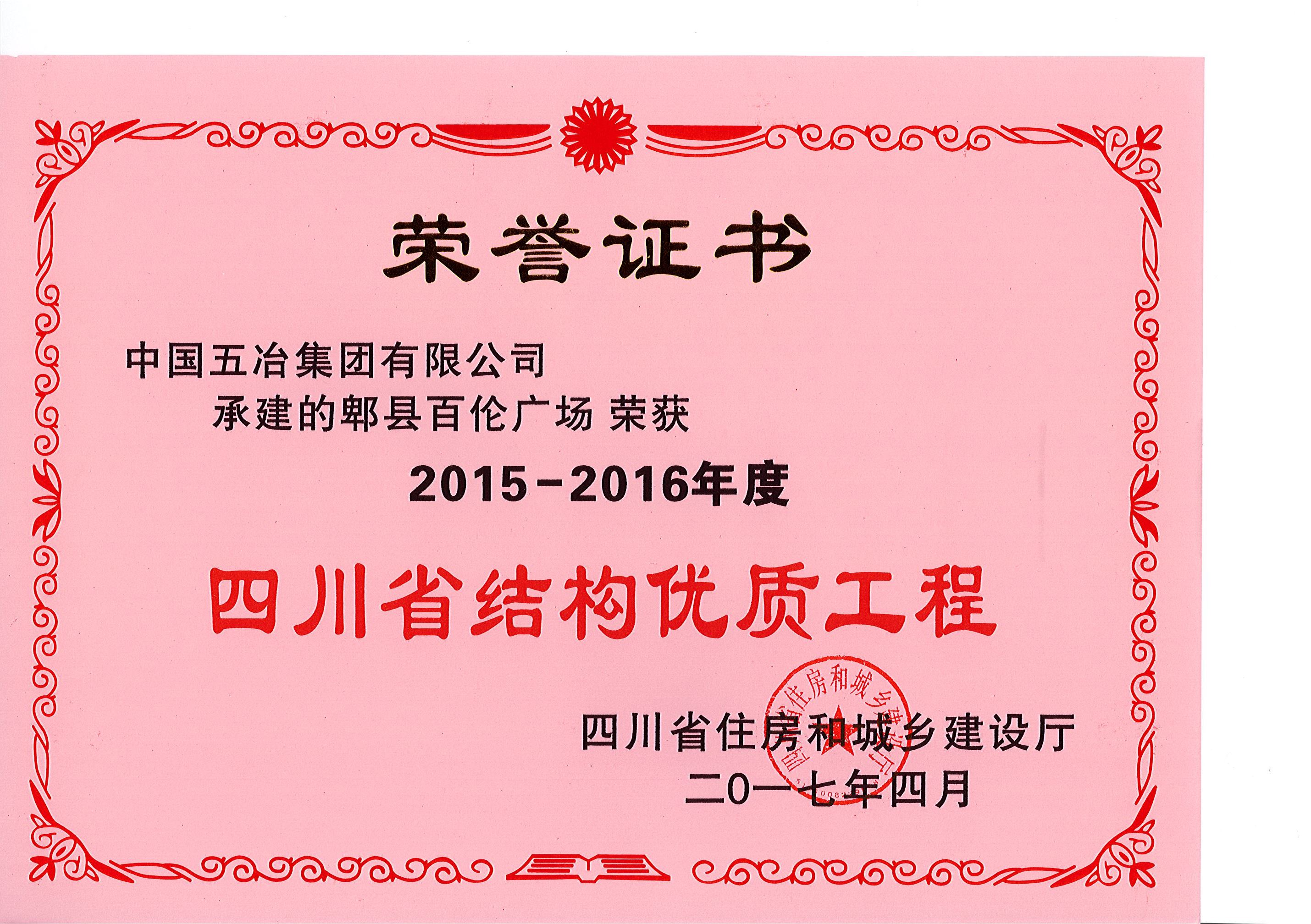 郫縣百倫廣場—2015-2016年度四川省結(jié)構(gòu)優(yōu)質(zhì)工程