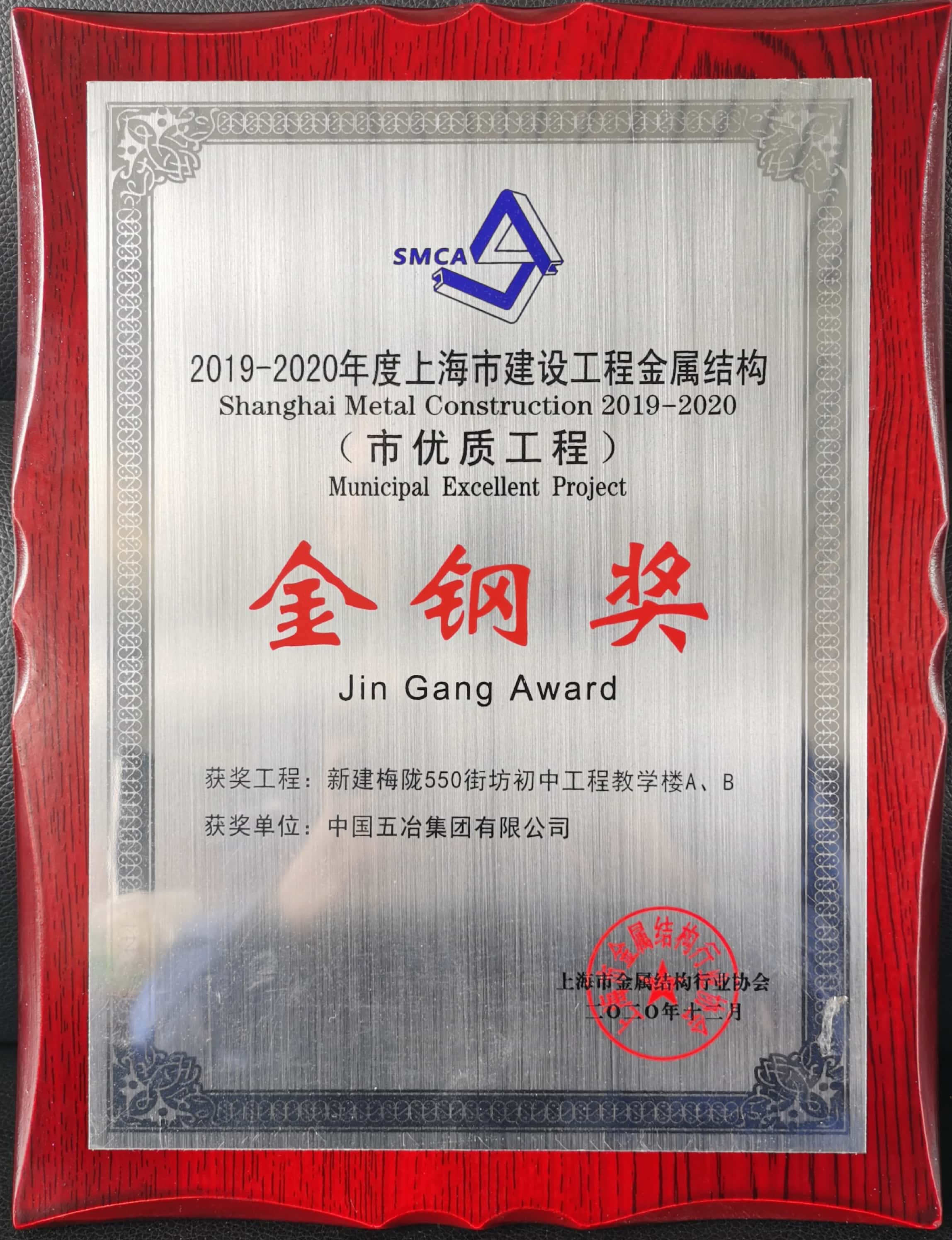 新建梅隴550街坊初中工程教學(xué)樓A、B榮獲2019-2020年度第二批上海市建設(shè)工程金屬結(jié)構(gòu)“金鋼獎”(市優(yōu)質(zhì)工程)