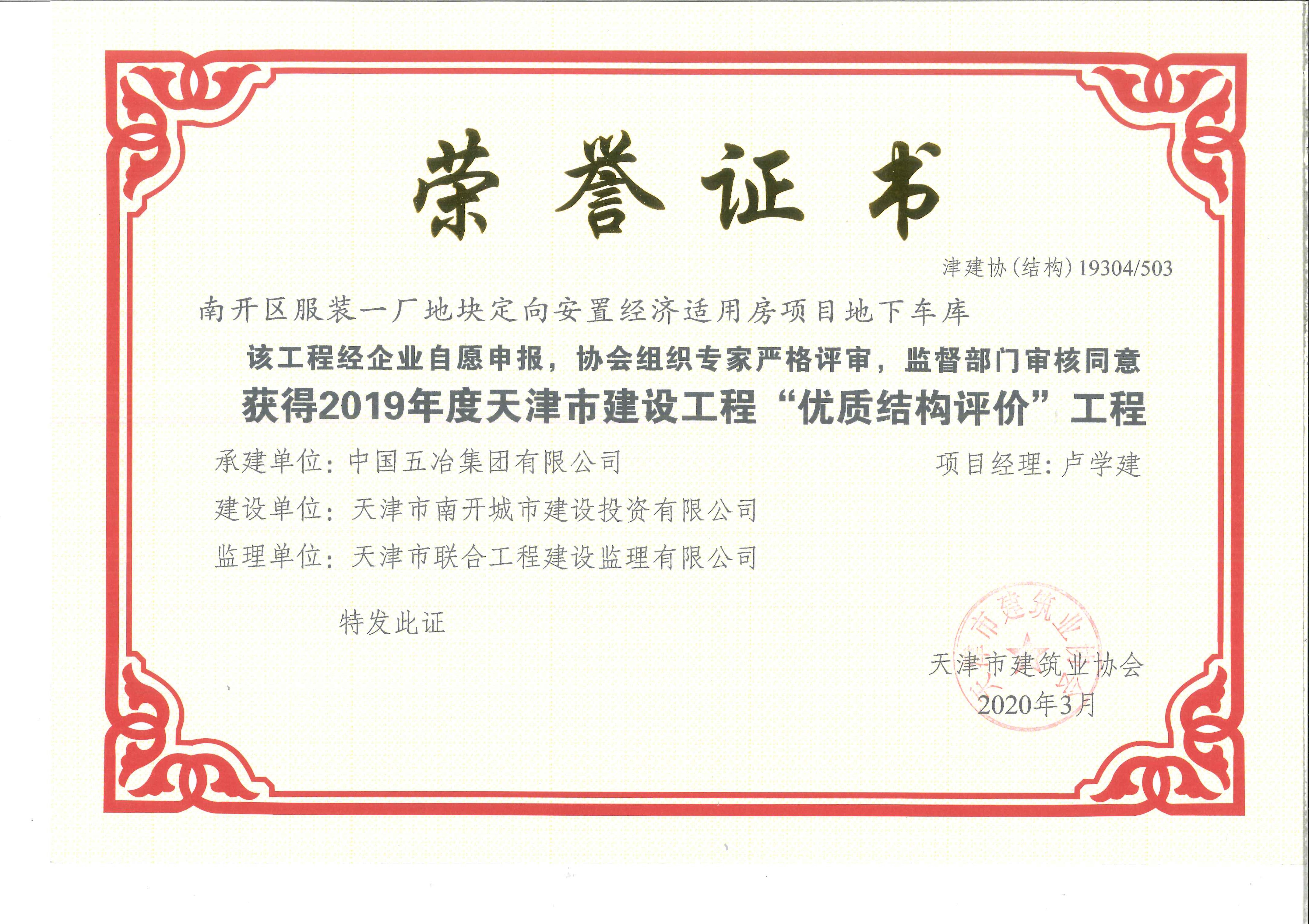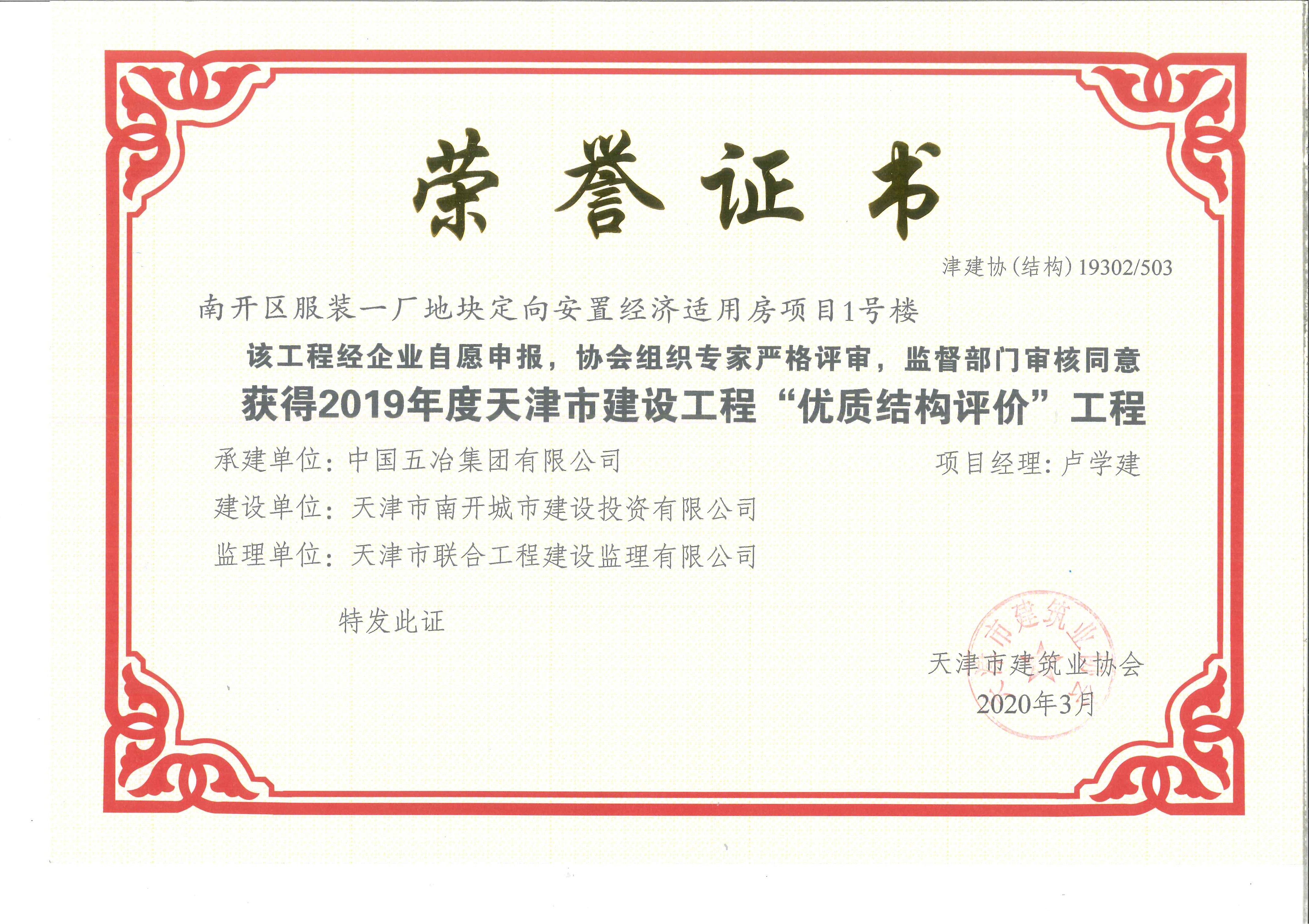 南開區(qū)服裝一廠地塊定向安置經(jīng)濟(jì)適用房-1#樓--2019年度天津優(yōu)質(zhì)結(jié)構(gòu)評價