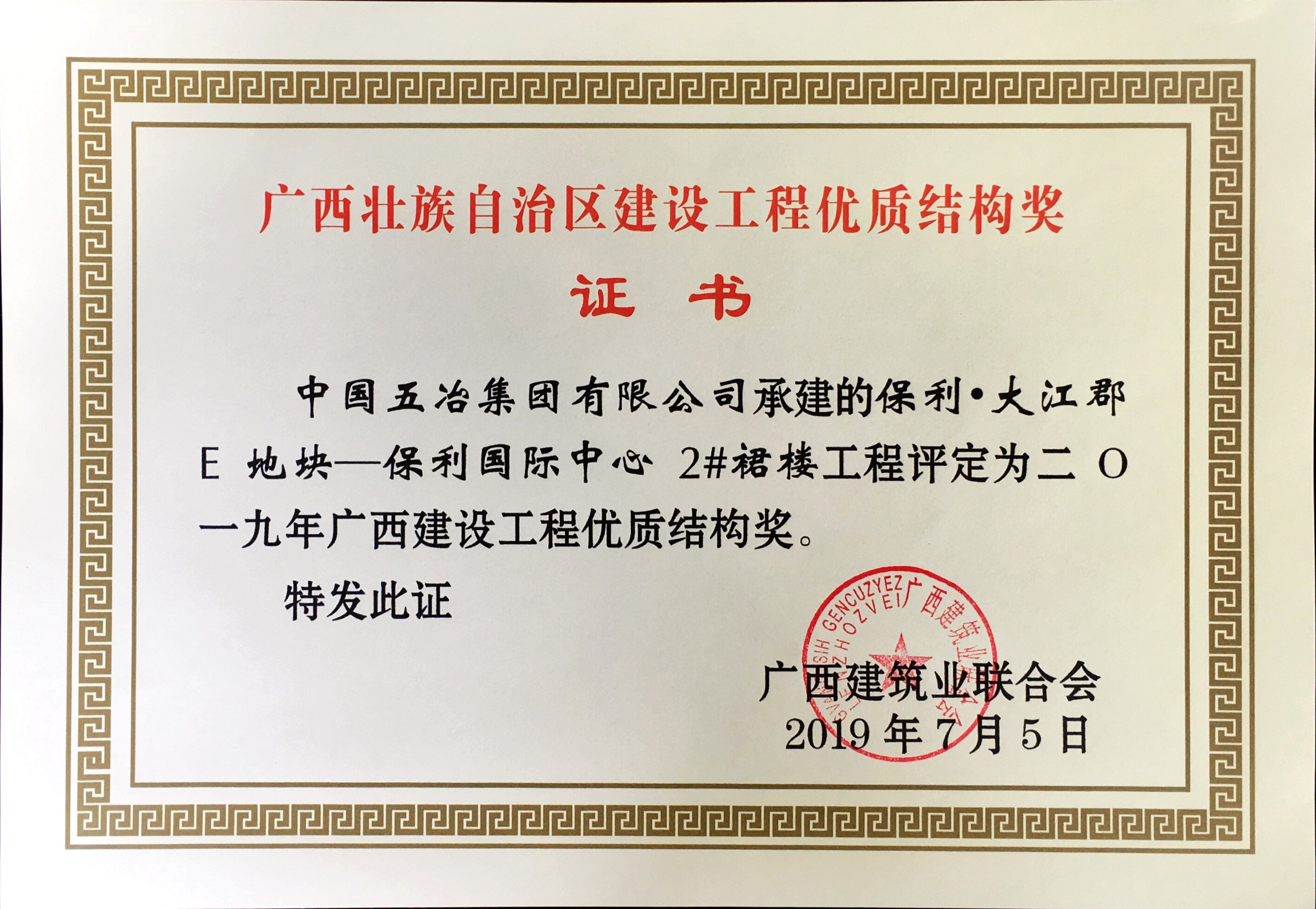 保利.大江郡E地塊-保利國際中心2#裙樓工程—2019年廣西建設(shè)工程優(yōu)質(zhì)結(jié)構(gòu)獎