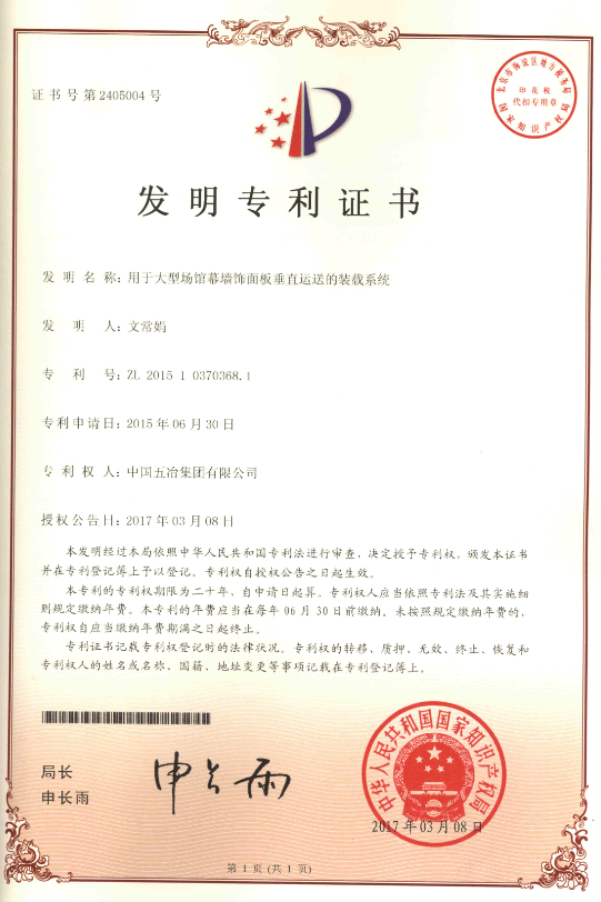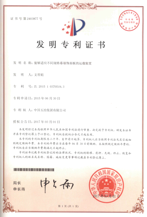 用于大型場(chǎng)館幕墻飾面板垂直運(yùn)送的裝載系統(tǒng) ZL2015103703681