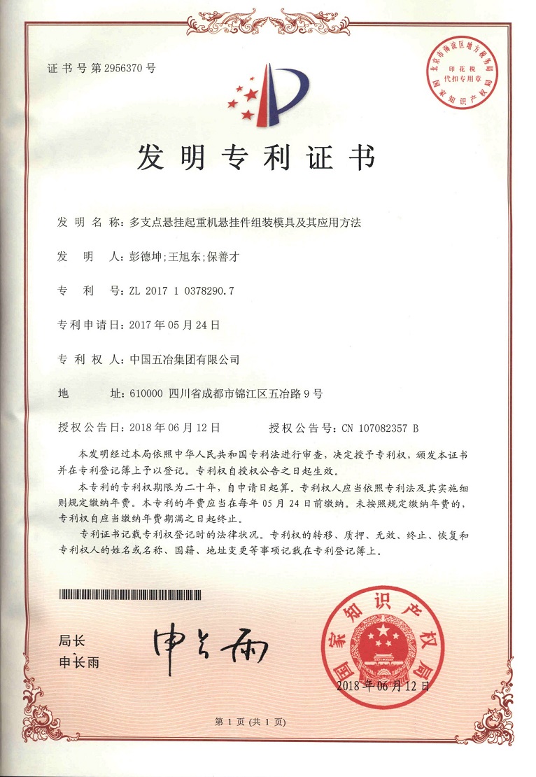 多支點(diǎn)懸掛起重機(jī)懸掛件組裝模具及其應(yīng)用方法 ZL 201710378290.7
