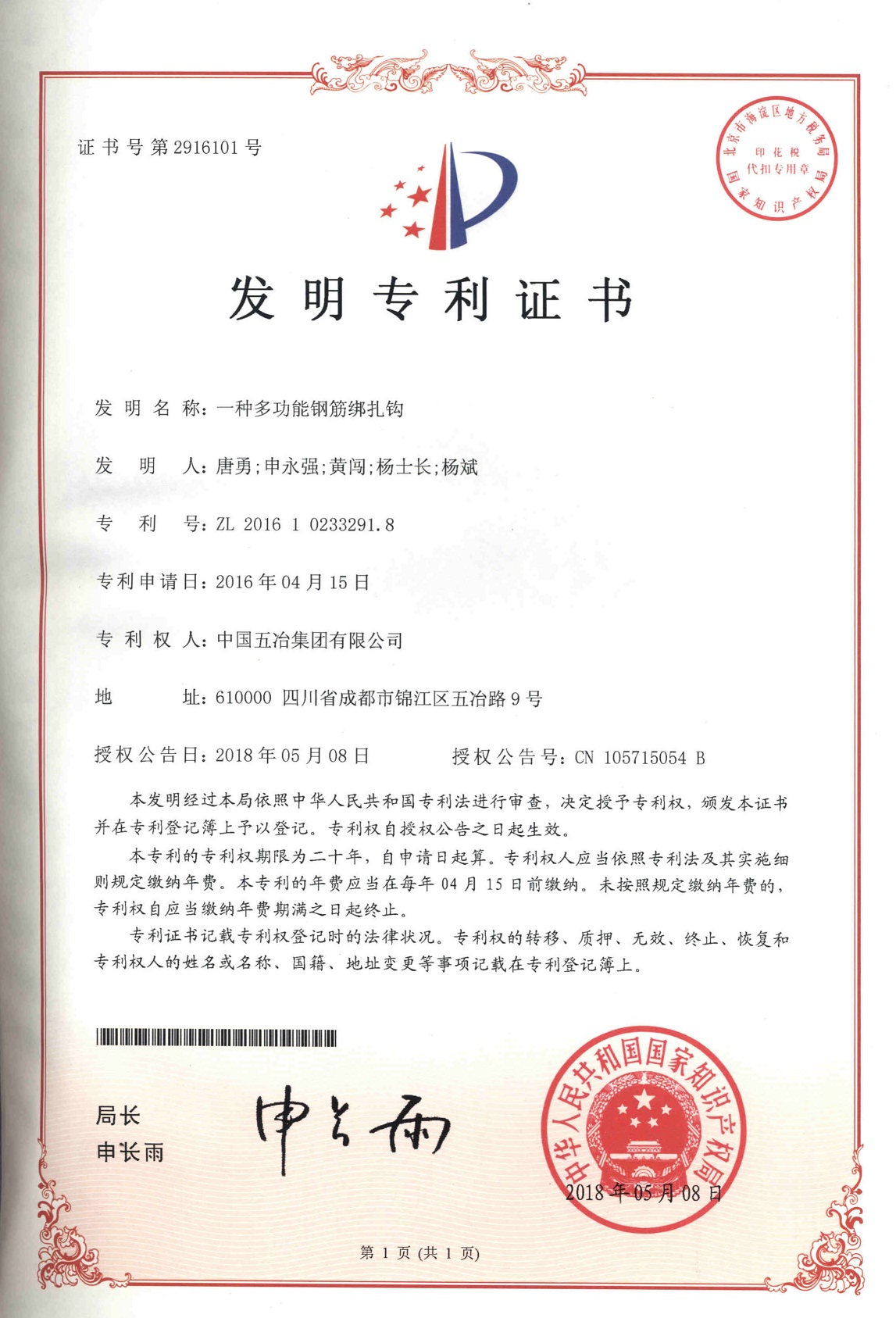 一種多功能鋼筋綁扎鉤 ZL201610233291.8