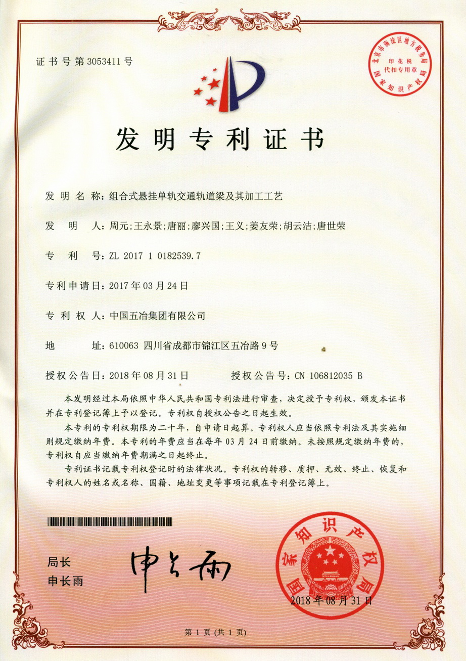 組合式懸掛單軌交通軌道梁及其加工工藝 ZL 201710182539.7