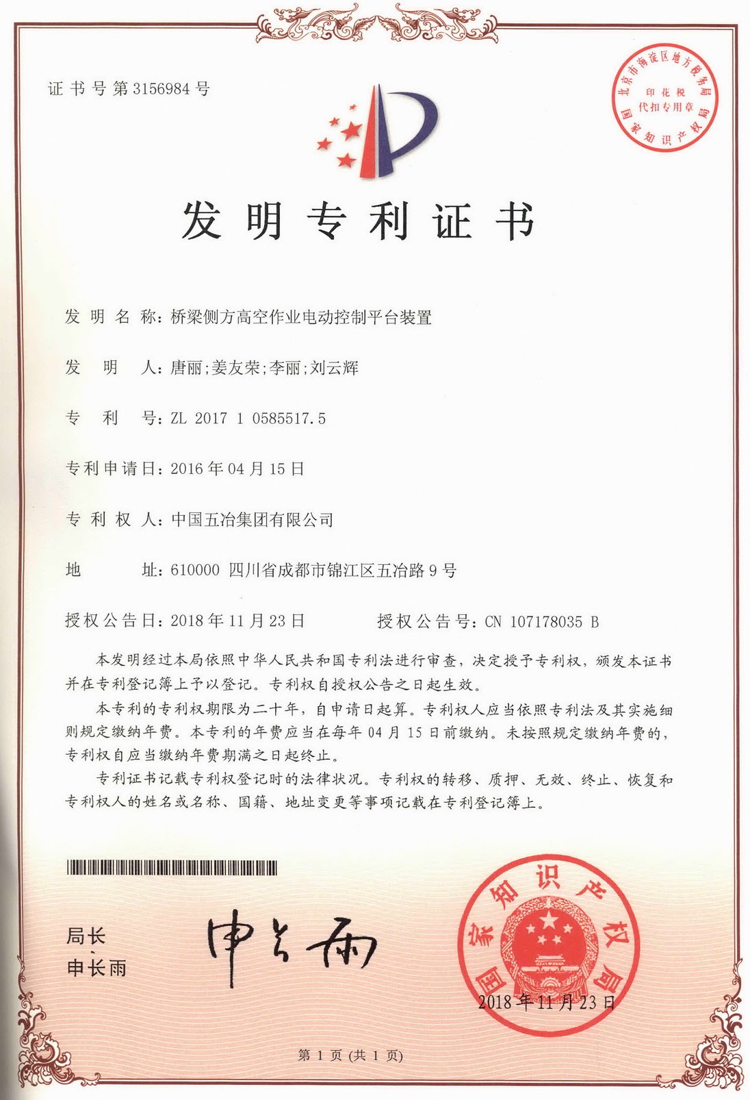 橋梁側(cè)方高空作業(yè)平臺(tái)裝置 ZL 201710585517.5