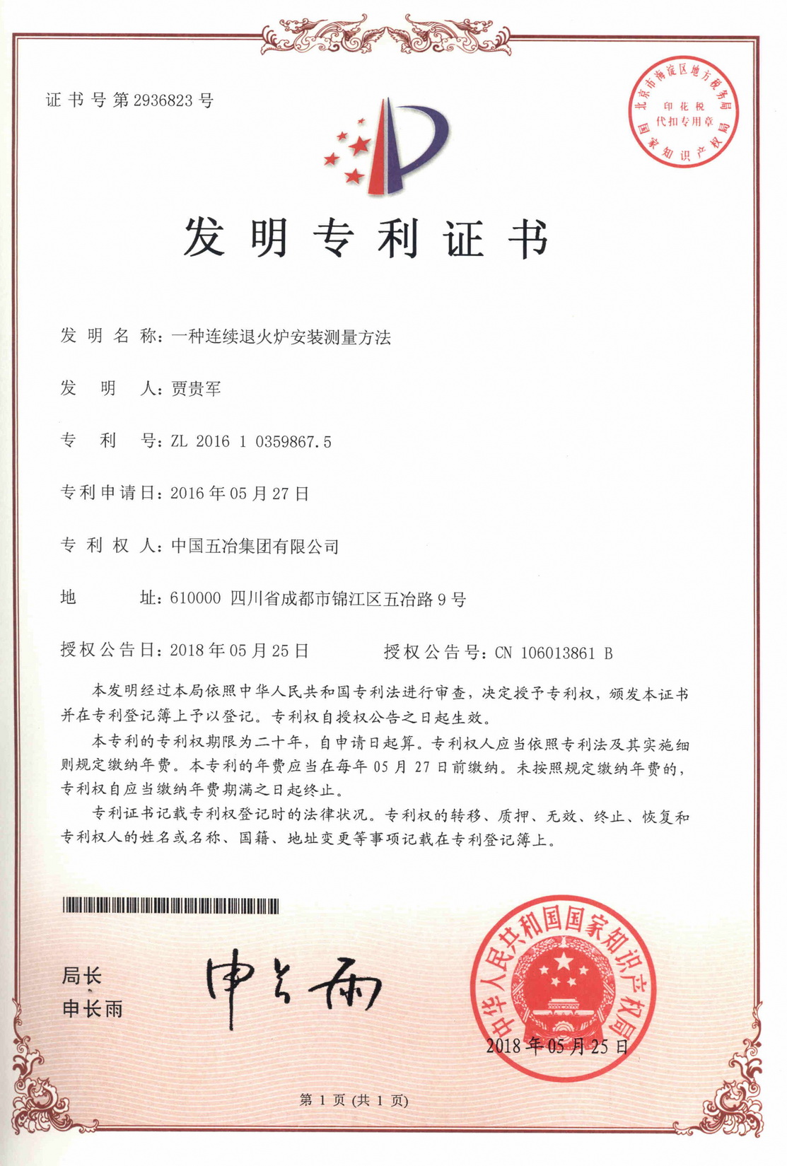一種連續(xù)退火爐安裝測(cè)量方法 ZL 201610359867.5