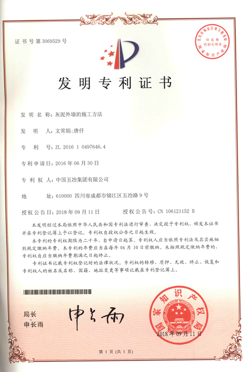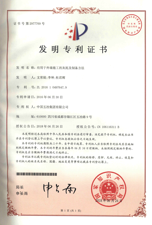 應(yīng)用與外墻施工的灰泥及制備方法 ZL201610497647.9