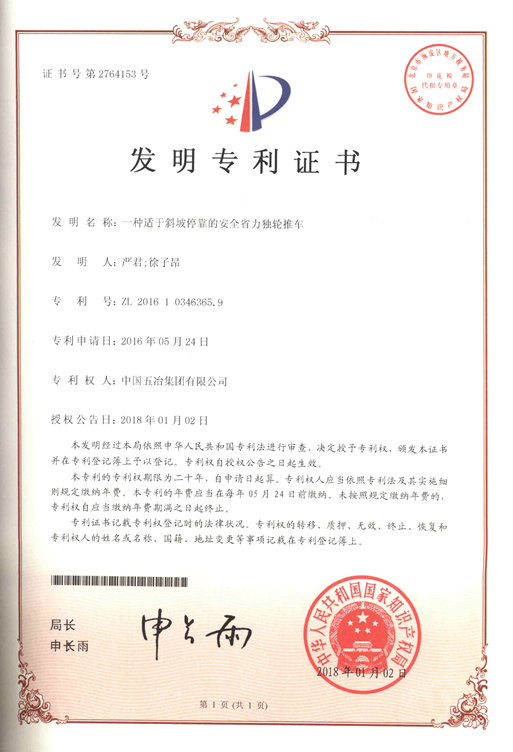一種適于斜坡停靠的安全省力獨(dú)輪推車 ZL 201610346365.9