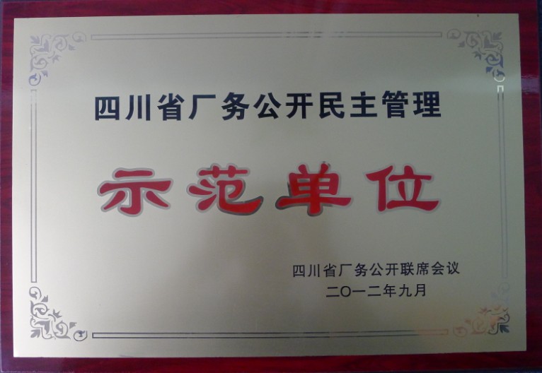 2012年9月,中國五冶集團(tuán)在四川省創(chuàng)建廠務(wù)公開民主管理示范單位活動中,榮獲四川省“廠務(wù)公開民主管理”示范單位稱號。