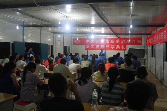 9月1日,在這個(gè)全國大大小小學(xué)校開學(xué)的日子,一公司華新美廬項(xiàng)目部職工夜校也迎來了第一批“學(xué)生”。晚上七點(diǎn)半,華新美廬項(xiàng)目部管理人員、民工,一公司黨群部、安全部、人力資源部代表共七十余人著工裝整齊入場,華新美廬項(xiàng)目部“職工夜校”開學(xué)典禮拉開了序幕。