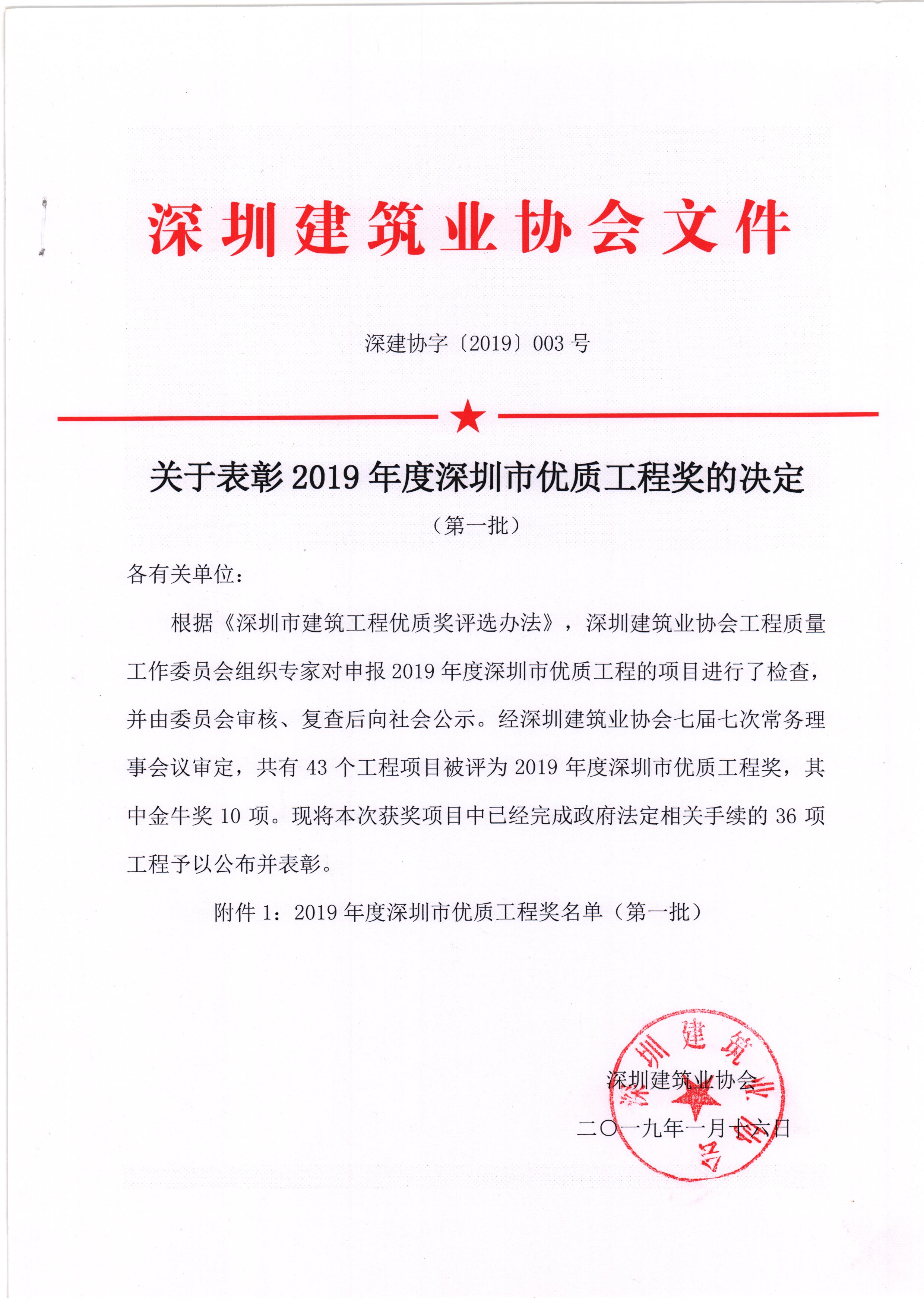 龍崗智慧家園(一期)榮獲2019年度第一批深圳市優(yōu)質(zhì)工程獎