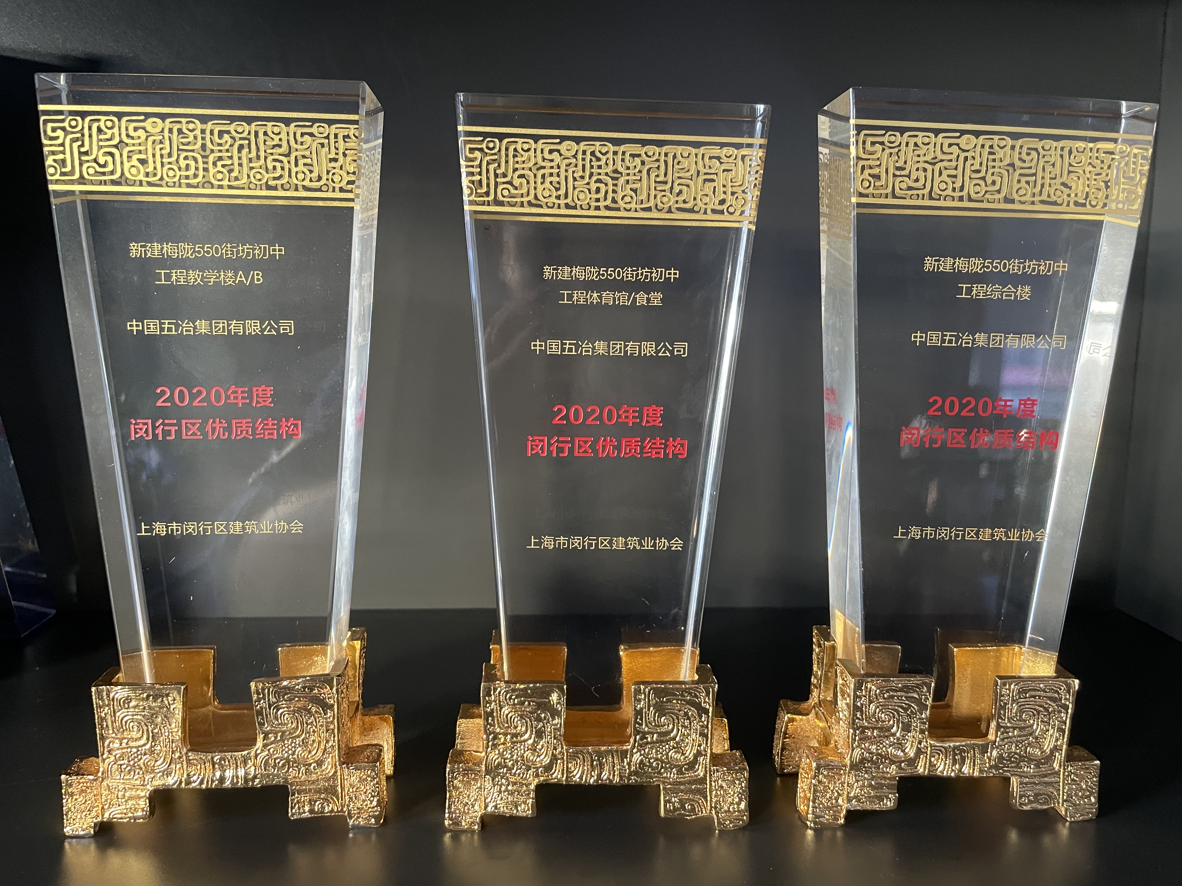 新建梅隴550街坊初中工程教學(xué)樓A/B、新建梅隴550街坊初中工程體育館/食堂、新建梅隴550街坊初中工程綜合樓榮獲2020年下半年度上海市閔行區(qū)建設(shè)工程優(yōu)質(zhì)結(jié)構(gòu)