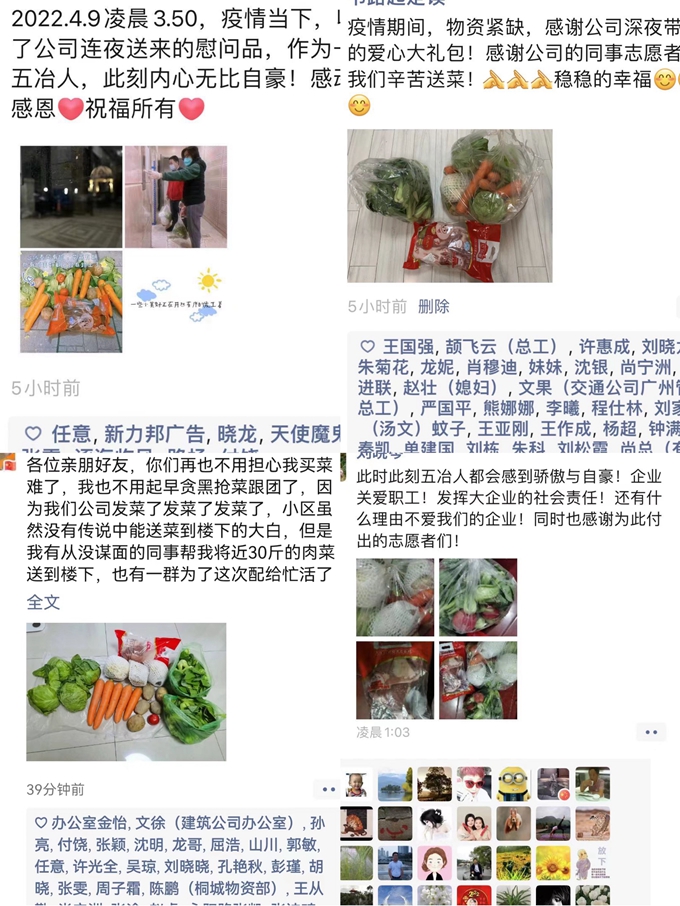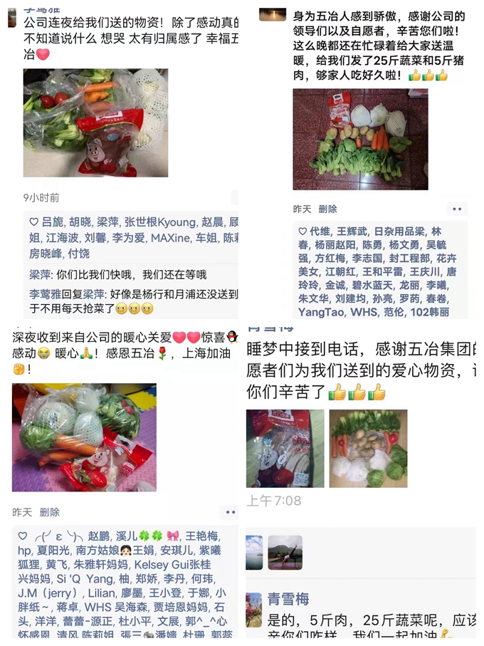“感謝你們記掛退休的老員工,雪中送炭帶來蔬菜和肉,作為家屬沾光了。也請(qǐng)你們做好防護(hù),照顧好自己哦!再次感謝!”