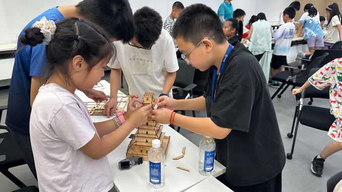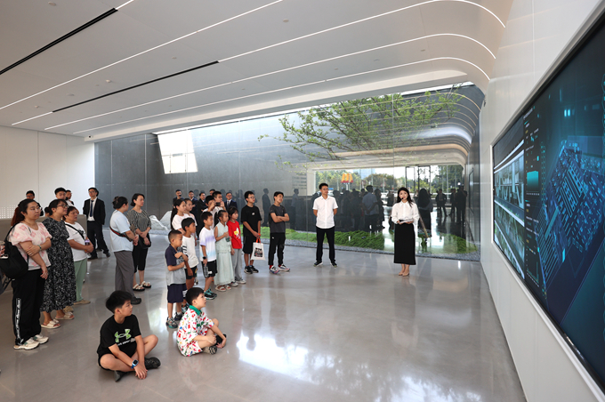 活動當天,現(xiàn)場工作人員帶領孩子和工友們走進中國五冶集團科技中心大廈,沿著精心設計的路線,深度探索這座零碳建筑的“科技密碼”,大家觀看了中國五冶集團自主研發(fā)的建筑智慧低碳運維系統(tǒng),并參觀了多個頂級科學家領銜的創(chuàng)新工作室和建筑工業(yè)化與智能建造、城市更新、智慧機電、公園城市、綠色與智慧巖土等八大工程技術研究中心,全方位體驗了零碳建筑的科技魅力。參觀結束后,“裝配式建筑科普講座”精彩開講,工作人員通過生動的圖文視頻,深入淺出地講解了裝配式建筑與傳統(tǒng)建筑的區(qū)別,帶領大家穿越不同歷史時期,感受裝配式建筑的發(fā)展脈絡,了解裝配式建筑的諸多優(yōu)點和未來發(fā)展前景,讓孩子們對裝配式建筑有了全新的認知。隨后,“趣味小試驗”環(huán)節(jié)將活動推向高潮,孩子們每4人被分成1個小組,展開了一場緊張而歡樂的“建筑搭建大比拼”,大家齊心協(xié)力,將零散構件組建成精巧的建筑模型,優(yōu)先完成搭建的小組收獲了精美獎品,現(xiàn)場歡聲笑語不斷。活動結束后,工作人員向全體兒童贈送了文具用品并給予祝福,鼓勵他們好好學習、健康成長。